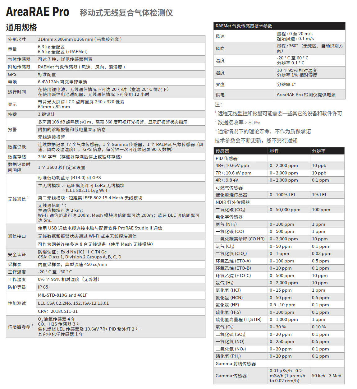 AreaRAE Pro 無線復合氣體檢測儀是一款具有遠程通信能力的可移動式區(qū)域檢測儀,它可同時檢測有毒有害氣體、可燃氣體、揮發(fā)性有機化合物等多種氣體和放電離輻射,也可以測量影響氣體擴散速度和方向等的氣象參數(shù)。