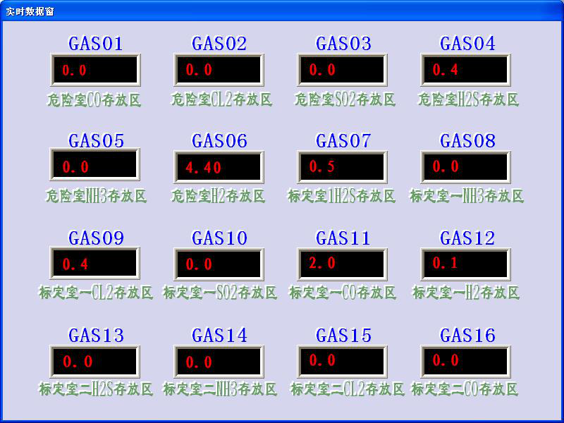 操作人員可以通過工控機的觸摸屏、操作員站和工程師站等人機交互界面,實時監(jiān)視廠區(qū)內(nèi)所有檢測點的情況,主要有氣體濃度值,報警上限,實時曲線和歷史數(shù)據(jù)等。當(dāng)發(fā)生報警時也可以通過工控機進行消音和報警響應(yīng)。