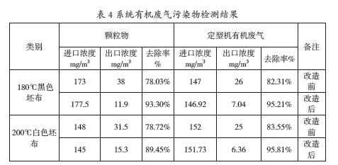 根據(jù)實測,經(jīng)過吸附再生及催化氧化組合系統(tǒng),有機廢氣污染物檢測結(jié)果見表4。