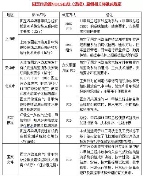 1)上海:《上海市固定污染源非甲烷總烴在線監(jiān)測系統(tǒng)安裝及聯(lián)網(wǎng)技術(shù)要求(試行)》、《上海市固定污染源非甲烷總烴在線監(jiān)測系統(tǒng)驗收及運行技術(shù)要求(試行)》;