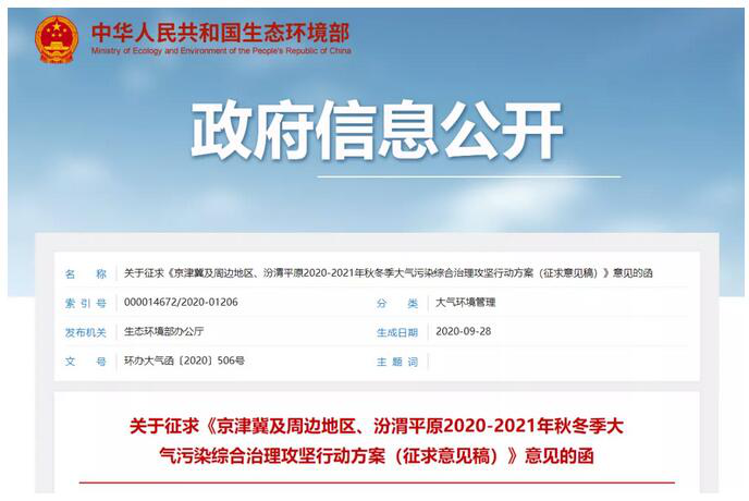 2020-2021 年秋冬季是第 4 個(gè)攻堅(jiān)季,事關(guān)全面建成小康社會(huì),事關(guān)“十三五”規(guī)劃和打贏藍(lán)天保衛(wèi)戰(zhàn)圓滿收官。9月28日,生態(tài)環(huán)境部發(fā)布《京津冀及周邊地區(qū)、汾渭平原2020-2021年秋冬季大氣污染綜合治理攻堅(jiān)行動(dòng)方案(征求意見(jiàn)稿)》,持續(xù)開(kāi)展秋冬季大氣污染綜合治理攻堅(jiān)行動(dòng),確保如期完成打贏藍(lán)天保衛(wèi)戰(zhàn)既定目標(biāo)任務(wù)。